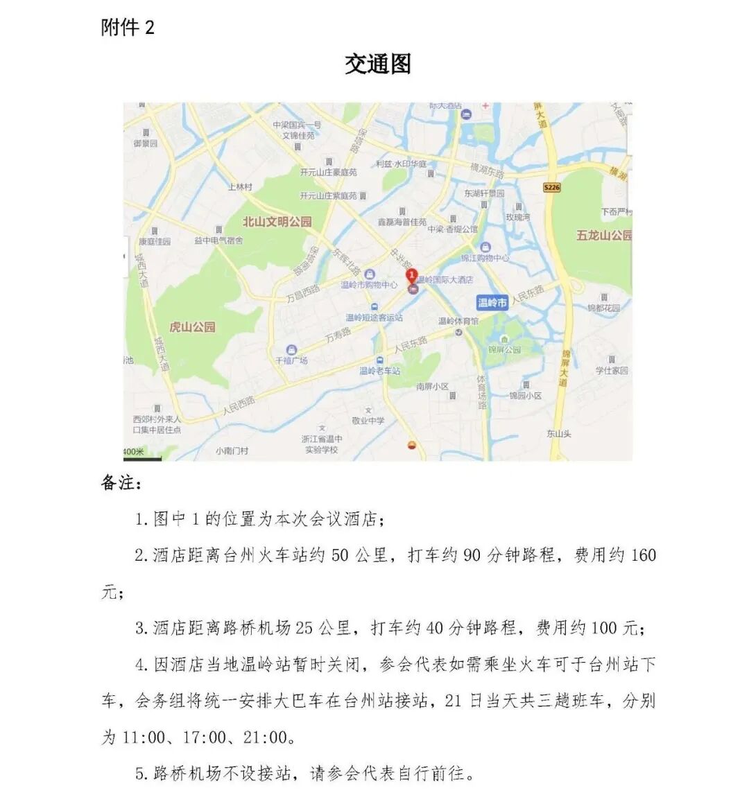 ★因温岭站暂时关闭,参会代表如需乘坐火车可于台州站下车,会务组将统一安排大巴车在台州站接站,21日当天共三趟班车,分别为11:00、17:00、21:00。